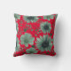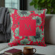Coussin florale couleur vert rouge, élégante aux accents de script avec de belles fleurs à la mode et un look vintage, parfait pour les vacances, printemps, automne, automne, ou décor maison d'hiver.