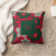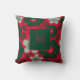 Coussin florale couleur vert rouge, élégante aux accents de script avec de belles fleurs à la mode et un look vintage, parfait pour les vacances, printemps, automne, automne, ou décor maison d'hiver.
