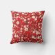 Coussin rouge vif aux fleurs blanches et roses