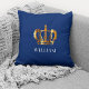 Couronne d'or royale Nom personnalisé Oreiller à lancer bleu
