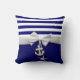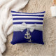 Coussin Ruban blanc nautique et charmes de rayure bleue