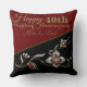 Un magnifique coussin d’anniversaire du 40e mariage pour l’anniversaire rouge de rubis de Maman et Papa - Ce coussin se targue d’une grappe florale sur les souhaits d’arrière - plans noirs et d’anniversaire en lettres d’or sur arrière - plan rouge de rubis. Le texte de ce coussin est entièrement personnalisable et vous permettra de le modifier comme vous le souhaitez.