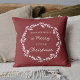 Coussin décorative de Noël personnalisée avec le design "Ayez-vous un joyeux petit Noël" avec une couronne d'hiver de style rustique dessinée à la main.