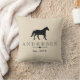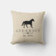 Silhouette de cheval noir rustique élégant jetez l'oreiller avec le nom de votre famille et date établie. Le dos du coussin a une grande lettre monogramme.