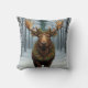 Rustic Christmas moose winter snowy woodland forest throw pillow.