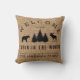Belle, unique, unique, rustique unique, design personnalisé, dispose d'un burlap arrière - plan rustique, un ours, des pins et de l'orignal, avec votre nom de famille, les mots : BIENVENUE À NOTRE CABINE DANS LES BOIS MICHAEL, ELIZABETH, BRAYDEN & ALEXA LA FAMILLE ANDERSON" en typographie noire avant et arrière. Personnalisez ce coussin en ajoutant vos propres informations personnelles. Fait un grand mariage, anniversaire, ou cadeau de ménage. Cliquez sur "personnaliser ce modèle" pour modifier les noms, les polices et les couleurs afin de créer un design unique. Quel accessoire élégant pour votre salon, chambre ou chambre familiale. Si vous avez besoin d'aide sur la personnalisation, envoyez-moi un courriel à ybnormalone @gmail.com. Merci de vous être arrêté par www.zazzle.com/WhisperingPines. ©Karen Hall