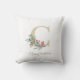 Coussin décoratif sur mesure pour la saison des fêtes avec branche de baies d'aquarelle avec initiale personnalisée.