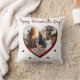 Burgundy Red Valentine's day Heart Family Photo Script Coussin. Le dos a le coeur rouge sur un arrière - plan blanc. Ajoutez votre photo et votre texte.