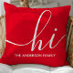 Coussin Salutation Rouge Script Personnalisé Hi