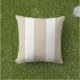 This neutral modern outdoor pillow features a pattern of five broad vertical cabana stripes in sand beige and white.