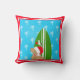 Coussin Santa Golden Surfboard Dog Seagull Christmas