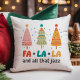 Montrez votre esprit de Noël avec cet oreiller amusant présentant une illustration tendance de style rétro de trois sapins de Noël ornés de décorations, une typographie colorée qui dit « FA LA LA », et une palette de couleurs rouge, verte et jaune. Gardez la phrase « Et tout le reste », ou ajoutez votre propre texte personnalisé pour capturer votre esprit de vacances unique.