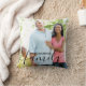 Coussin photo de famille personnalisé avec habillage de texte élégant. Le modèle photo est mis en place pour que vous puissiez ajouter vos propres photos - une de l'avant et une de l'arrière. Le recto contient également la superposition de texte que vous pouvez personnaliser avec votre nom de famille. La famille est indiquée à la main dans un script élégant tandis que votre nom de famille est imprimé en caractères gras. Cette conception est disponible avec une superposition de texte blanc ou une superposition de texte noir pour que vous puissiez choisir celle qui fonctionne le mieux avec votre photo.