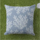 This simple, blue toned throw pillow, featuring a detailed sea coral silhouettes, will give your home a coastal pop of color.