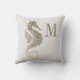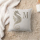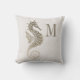 Coussin décorateur avec un design marin/hippocampe doré sur un arrière - plan crème. Personnalisé avec votre monogramme/initial.