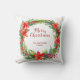 Ce coussin de vacances simple et élégant dispose d'une superbe couronne d'aquarelle avec des feuilles verts et des baies rouges sèches, et d'une typographie de script rouge moderne qui dit "Joyeux Noël" sur un arrière - plan blanc.