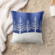 Des silhouettes d'arbre blanc sur des collines enneigées contre un ciel bleu nuit, une image festive sur des coussins et des coussins.