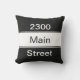 Vous pouvez personnaliser cet oreiller à lancer noir et blanc avec le texte souhaité, comme une adresse de rue. La coussin est classique, dans les tons noir et blanc. Comme ce coussin pourrait montrer une adresse de rue, ce serait bien comme un cadeau de réchauffage pour un nouveau propriétaire.