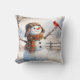 Coussin Snowman With Red Cardinal Bird