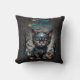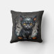 Coussin Soirée d'Halloween avec chaton et citrouille.