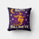 Coussin Sorcière sur le chat avant sur le pourpre heureux