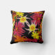 Ce bel oreiller décoratif à jetons présente un design coloré de dahlias stargazer aux couleurs brillantes de rose, jaune, orange, or, fuschia et marron sur un arrière - plan noir. Ils sont appelés stargazers parce que, contrairement à la dahlia traditionnelle, les pétales ont une forme pointue d'étoile. L'image est répétée à l'arrière.