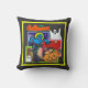 Cette image clipart présente des créatures d'Halloween. Une pleine lune, un fantôme, un citrouille, une sorcière et une pierre tombale sont présentés dans un bloc de couleurs effrayantes. Une bannière avec Halloween et une chauve-souris sont en tête. Une bordure jaune a également été ajoutée à l'avant et à l'arrière pour un effet d'Halloween supplémentaire. Tout cela est présenté sur un fond noir. Ces coussins sont disponibles dans des styles et des tailles variés.