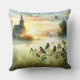 Coussin Sunrise Church with Birds in Misty Meadow No Verse