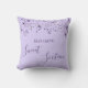 Un coussin pour une chambre de filles Sweet 16, 16e ans. Un arrière - plan violet de couleur lilas aux étoiles. Personnalisez et ajoutez un nom. Sweet 16 est écrit avec un grand script de style à la main moderne.