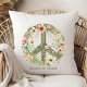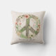 Pretty Floral 70's Retro "Bloom in Peace" Panneau de Paix Jeter Oreiller. Ce design présente un superbe design rétro floral, qui entoure en son centre un grand panneau de tranquillité audacieux. Les fleurs vibrantes d'inspiration vintage sont disposées dans un harmonieux mélange de couleurs. Sous le signe de la paix, l'expression "Bloom in Peace" est élégamment scénarisée, ajoutant une touche de charme inspirant au design général.