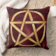 Cet oreiller de lancer présente une grande image wiccan ou païenne d'un symbole pentagramme doré sur un arrière - plan rouge foncé, à l'allure défraîchie. C'est l'ajout parfait à votre décor mystique de maison.
