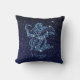 Drog kussen met het zodiale symbool voor Virgo gooien kussen in zacht zilverblauw, bedekt met de sterren van de constellatie, tegen een sterrenhemelachtergrond die van diep-middernacht blauw tot zwart wordt gegraveerd.