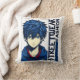 The design centers on a detailed illustration of a young man with vibrant blue hair and intense eyes, wearing a jacket in the style of Japanese pop culture. The art is highly stylized, set against a cream background with a slightly distressed, retro feel. Bold, vertical typography reading "STREETWEAR FASHION" and a cool checkerboard pattern run down the side, emphasizing the urban aesthetic. This is the perfect statement piece for fans of anime, manga, J-fashion, and modern streetwear.