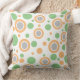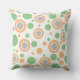 Motif géométrique de cercles avec des taches de polka vert sauge et orange clair sur fond blanc croquant à l'avant. Le dos est de couleur orange clair uni. Décoration intérieure moderne et tendance amusante. Créations originales de TamiraZDesigns.