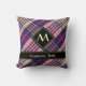 Tartan violet, jaune doré et bleu. Motif sans couture. Texte personnalisé et monogramme.