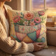 Coussin Tasse à thé patchwork aux fleurs fantaisistes