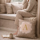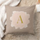 Feminine minimalist design in warm taupe with a soft blush watercolor accent and centered gold monogram. The balanced neutral palette adds quiet polish to beds, reading chairs, or layered seating, making it ideal for refined everyday home styling.
