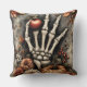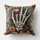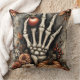 Tentation et décadence - Offre finale de l’automne Jeu d’oreiller Une main squelettique présente une pomme pourpre, entourée de citrouilles, de roses, de baies et de feuilles en chute. Les toiles s'étirent sur un fond sombre et texturé, faisant allusion aux sorts oubliés et à la chaleur qui s'estompe. La scène mêle beauté et pourriture, désir et terreur, une offrande automnale baignée de mystère, où chaque fleur murmure des fins.