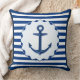 Coussin Thème nautique Bleu Blanc Ancre Bande marine