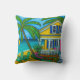 Un tableau de Lisa Lorenz d'une scène tropicale vibrante et joyeuse d'une maison de plage colorée et confortable le long d'une plage de bord de mer turquoise. Maintenant disponible sur un Oreiller à Throw pour égayer votre maison et la décoration extérieure.