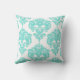 Coussin Tissu damassé sarcelle et blanc chic moderne éléga