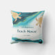 Tortues tribales d'or sur un arrière - plan bleu turquoise or aquarelle couleur encre marbre . Customisez ce coussin maritime maison de plage avec votre nom de famille et jour établi.