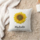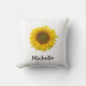 oreiller à lancer personnalisé, avec une simple image de fleur de soleil jaune sur un arrière - plan blanc. Les lettres noires peuvent être personnalisées avec vos propres informations et le dos a une couleur jaune correspondante. Parfait pour ajouter une touche de fleurs à votre décor maison.