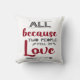 Ce coussin moderne blanc est doté d'une légende romantique, écrite dans d'élégantes polices rouges et grises, qui dit "Tout parce que deux personnes sont tombées amoureuses", et fait le cadeau parfait pour la Saint-Valentin, les anniversaires ou les anniversaires. Le dos est facilement personnalisable avec votre propre photo.