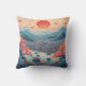 Coussin de peinture traditionnel coréen Ce coussin représente la Corée d'autrefois. Montagnes, arbres, rivières, oiseaux et maisons traditionnelles se côtoient.
