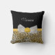 Un imprimé de guépard jaune doré et tendance lance l'oreiller avec un arc blanc brillant et élégant orné de jolies perles et d'un ruban de rosette au centre. Toute fille qui aime le jaune et le noir aimerait que son nom soit ajouté à ce design poster de animal chic et élégant. Image imprimée plate, pas le ruban réel.