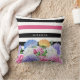 Coussin Trendy rose et noir rayures florales avec nom
