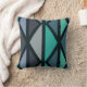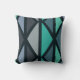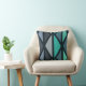 Coussin Triangles d'art géométrique rétro Turquoise noir