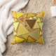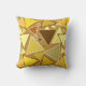 Mosaïque géométrique moderne du milieu du siècle Lance oreiller - triangles surlignés dans les tons de moutarde jaune et or, jaune clair et bronze, sur un arrière - plan doré chaud