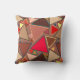 Mosaïque géométrique moderne du milieu du siècle de triangles surlignés dans taupe clair, chameau, brun chocolat et rouge corail sur un arrière - plan profond taupe tan lancer l'oreiller